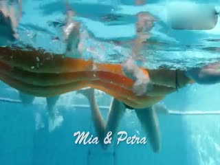 白虎萝莉姐妹在泳池底嬉戏玩耍